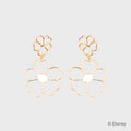 Argollas doradas con flores colgantes inspiradas en el corazón del bosque Wildwood. Su movimiento aporta dinamismo y elegancia. Elaboradas en millonesíma con acabado dorado suave y liviano.