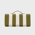 Cartera rectangular en cuero verde, con asa superior de mano y estructura muy definida. La combinación de colores en el cuero resalta su diseño único, creando un contraste elegante y vibrante. Perfecta para quienes buscan una pieza diferente sin perder la esencia Butrich.