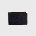 Te presentamos nuestro nuevo tarjetero con aplicaciones de flores negras detalladamente tejidas a mano sobre cuero color negro. El tarjetero Janis cuenta con seis espacios para poner tus tarjetas y un espacio con cierre para las monedas.