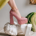 Esta plataforma en rosa viejo es ideal para quienes buscan altura con un diseño femenino y distintivo.