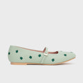 Lucky flat en cuero color verde. Diseño clásico de punta cerrada con tréboles bordados alrededor del zapato. Interior y plantilla en cuero, suela plana en cuero para máxima ligereza. Altura de 0 cm. Una pieza versátil que añade color y estilo al día a día.