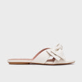 Flat en cuero color hueso, minimalista y elegante. El frente está adornado con un lazo en cuero del mismo tono, cosido a mano con acabado prolijo. Interior y plantilla de cuero, suela plana en cuero que aporta ligereza. Altura 0 cm. Atemporal y sofisticado, ideal para combinar con todo.