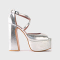 Te presentamos nuestra plataforma favorita, Biela. Es de cuero metalizado color plata. Esta plataforma mide 5 cm y tiene un taco de 14 cm perfectos para bailar toda la noche. Podrás ajustar el zapato a tu gusto en la parte del tobillo.
