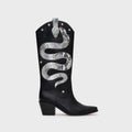 La bota Anaconda negra combina misterio, brillo y actitud. Ideal para elevar cualquier outfit con fuerza y estilo.