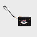 Tarjetero en cuero negro de acabado clásico. El Lucky Eye bordado aporta el sello de la suerte. Formato ultracompacto con varias ranuras para tarjetas. Un básico atemporal que combina con todo.